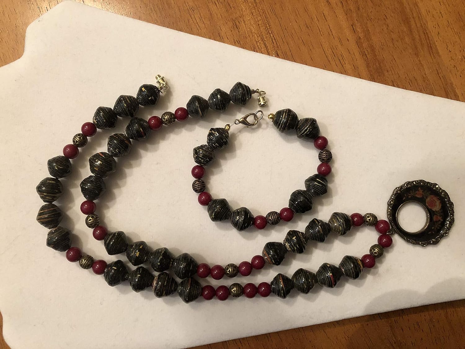 Amazon Com Black Red Gold Necklace And Bracelet Paper Beads Glass