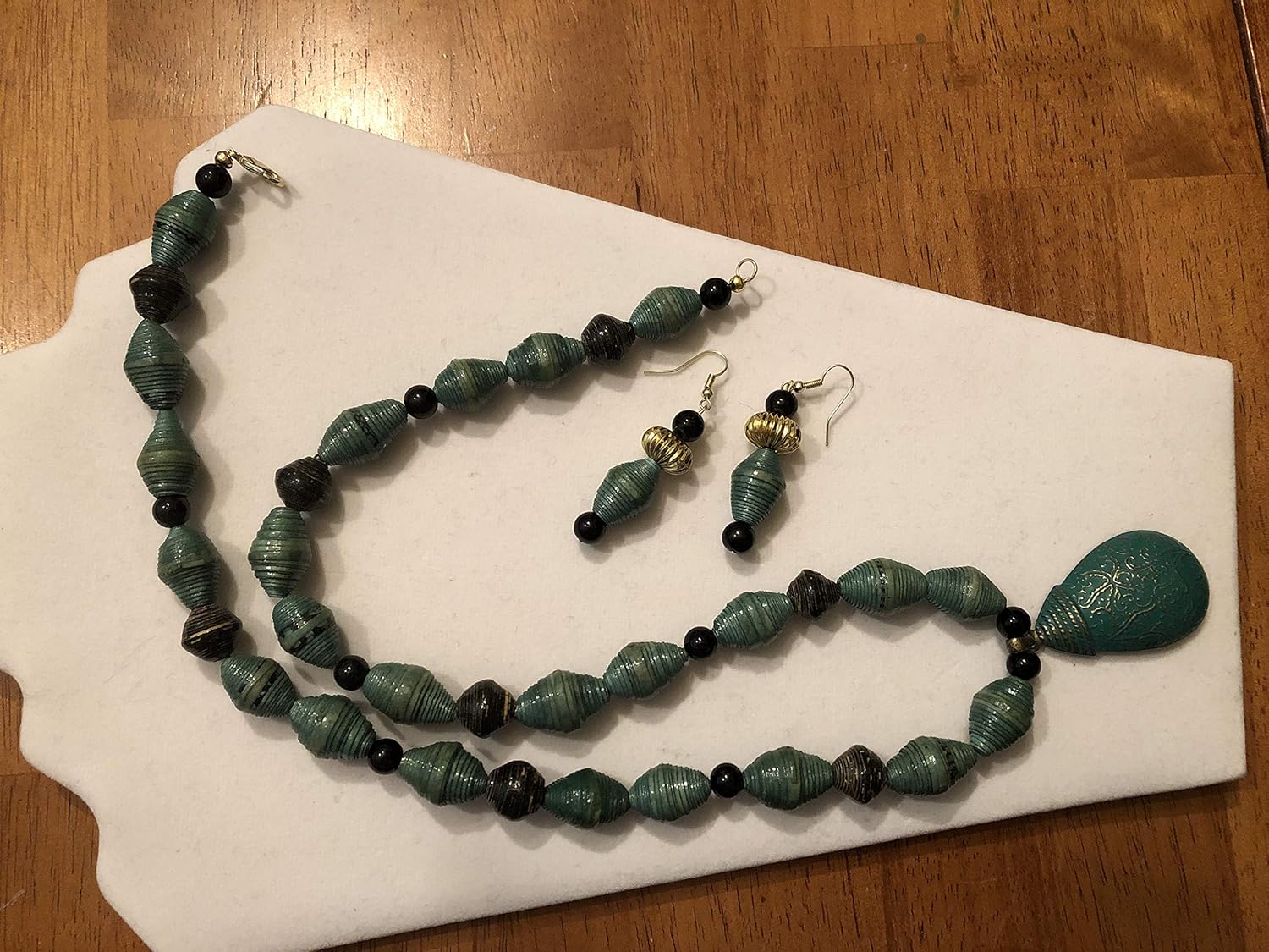 Amazon Com Green Black Gold Necklace And Earrings Paper Beads
