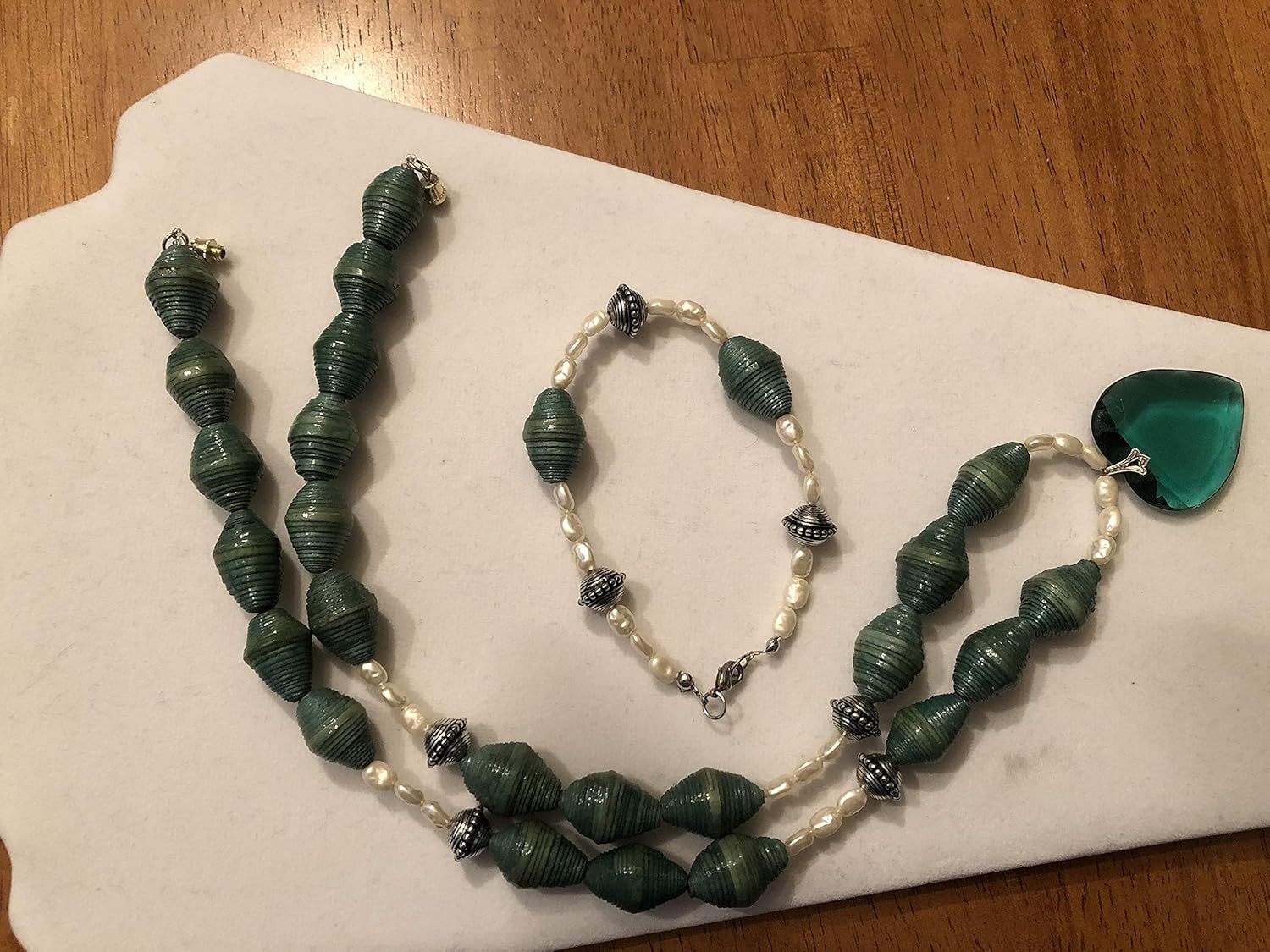 Amazon Com Green White Silver Necklace And Bracelet Paper Beads